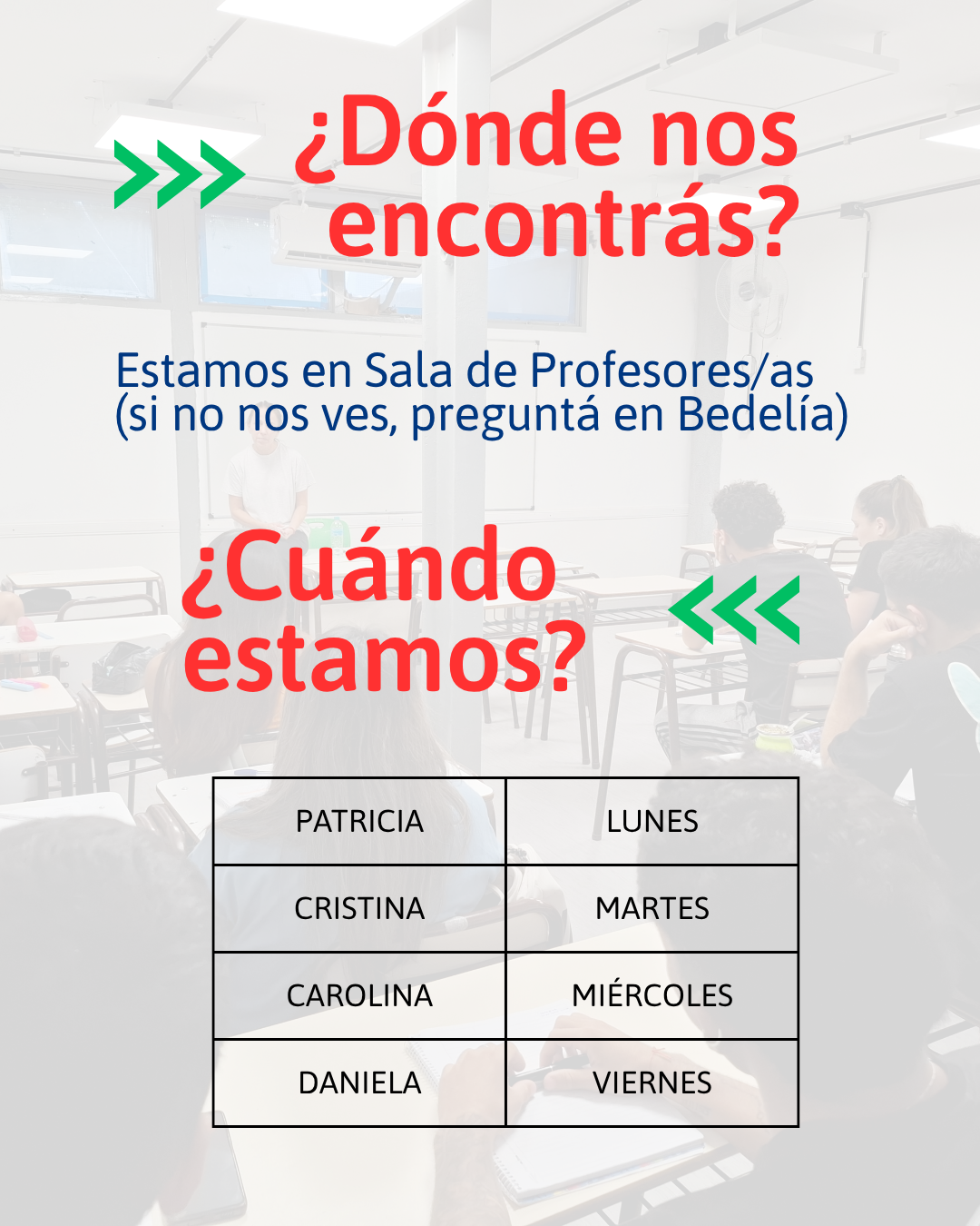 A continuación podés encontrar información sobre nuestras funciones, dónde y cuándo encontrarnos.